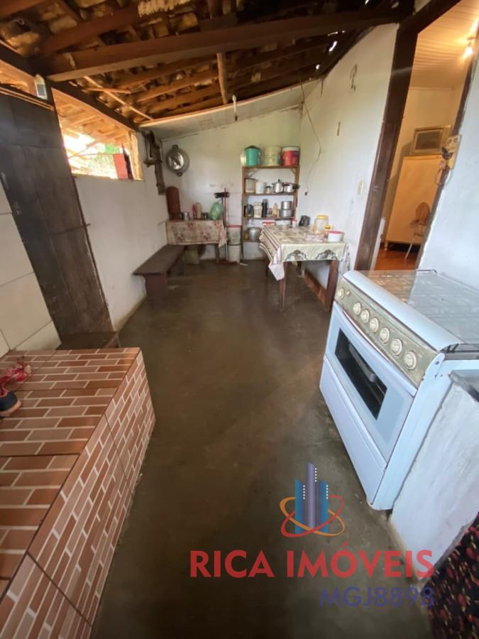 São 3.000m² de terreno, casa com varanda, 03 quartos, sala, cozinha, fogão a lenha, 01 banheiro social, quarto de despejo